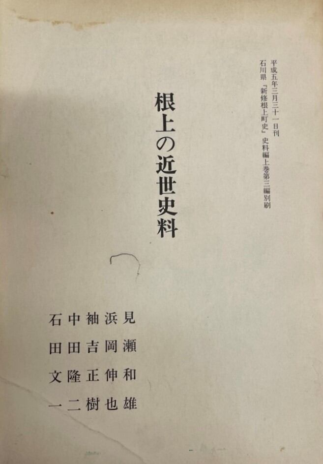 ・書名:根上の近世史料 石川県 「新修根上町史」 史料編上巻第三編別刷